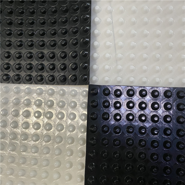 圓錐突臺(tái)的頂面膠接一層過濾土工布,以阻止泥土微粒通過,從而避免排水通道阻塞使孔道排水順暢。 傳統(tǒng)的排水方式使用磚石瓦塊作為導(dǎo)濾層、使用較多的鵝卵石或碎石作為濾水層、將水排到指定地點(diǎn)。而用排水板取代鵝卵石濾水層來排水則省時(shí)、省力又節(jié)能、節(jié)省投資、還能降低建筑物的荷載。