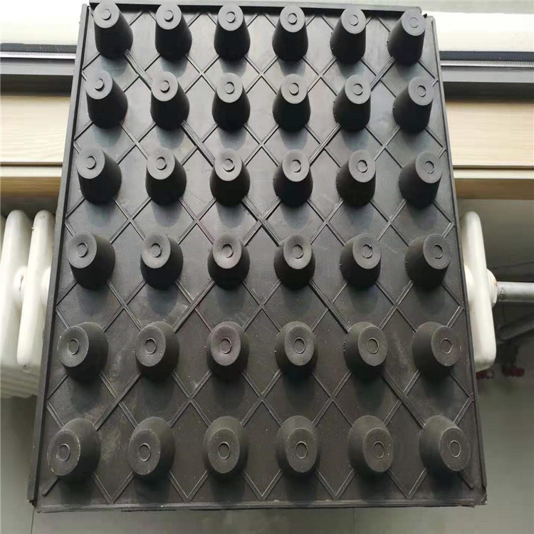 蓄排水板采用高密度基乙烯HDPE經(jīng)加熱加壓定型形成的一種既能營(yíng)造具有一定立體空間支撐剛度的排水通道,又可蓄水的一種輕型板材。該種板材自身就具有蓄水、排水兩種綜合功能,板材具有空間剛度高的特點(diǎn),抗壓性明顯優(yōu)于同類產(chǎn)品(可以通過(guò)現(xiàn)場(chǎng)試驗(yàn)檢驗(yàn)),能夠承受400Kpa以上的高抗壓負(fù)荷,同時(shí)可以承受在種植頂板回填土過(guò)程