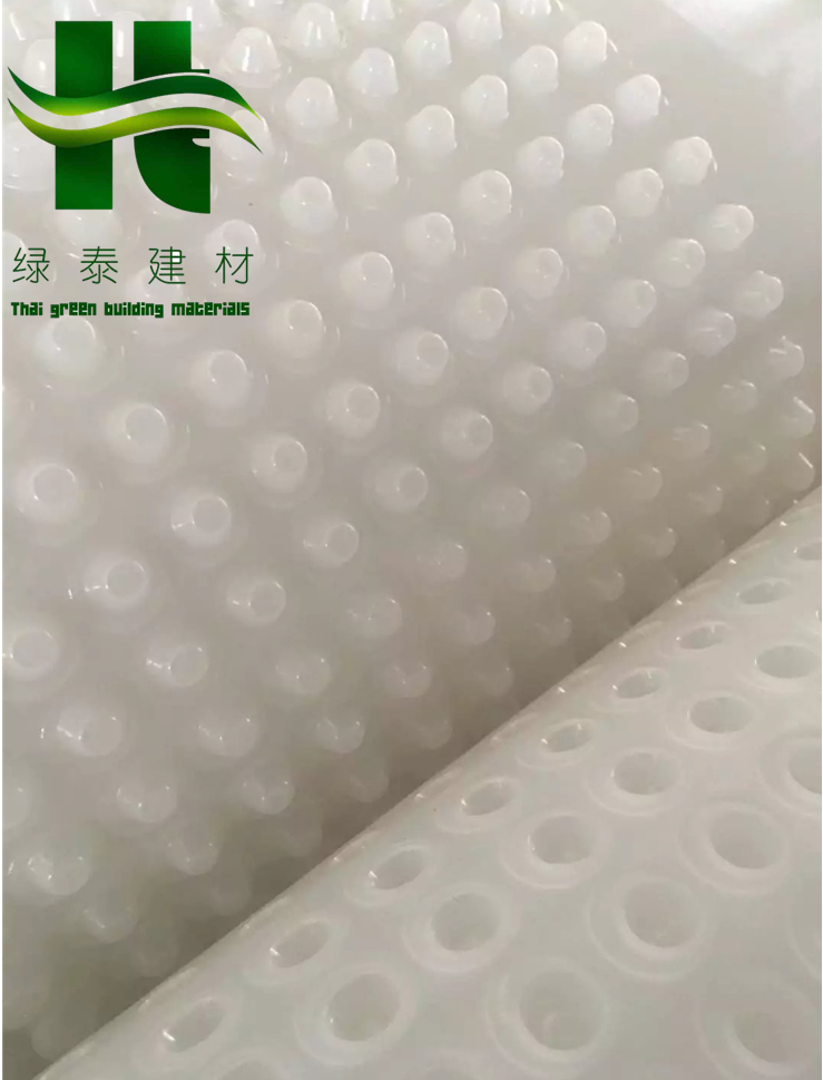 圓錐突臺的頂面膠接一層過濾土工布,以阻止泥土微粒通過,從而避免排水通道阻塞使孔道排水順暢。 傳統的排水方式使用磚石瓦塊作為導濾層、使用較多的鵝卵石或碎石作為濾水層、將水排到指定地點。而用排水板取代鵝卵石濾水層來排水則省時、省力又節(jié)能、節(jié)省投資、還能降低建筑物的荷載。